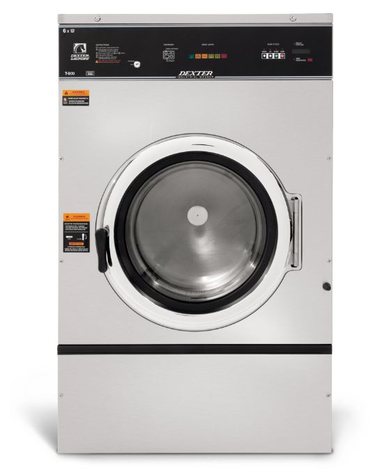 Dexter T-900 Commercial Washer – 60lb Capacity 6-Cycle On-Premise Washer, Microprocessor, Black Graphics, 9.0 cu. ft., 100 G-force Extract, Variable Speed Drive, 6 Preset Cycles, Liquid Supply Injection, 304 Stainless Steel Cylinder, Outer Tub, Top, Front and Side Panels, Heavy Duty Bearing and Seals, 208-240/60/1 or 3
